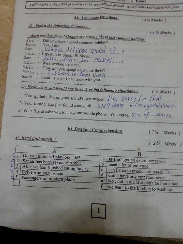 امتحان الدقهليه اليوم الاحد 18-1-2015 ....وبالاجابه