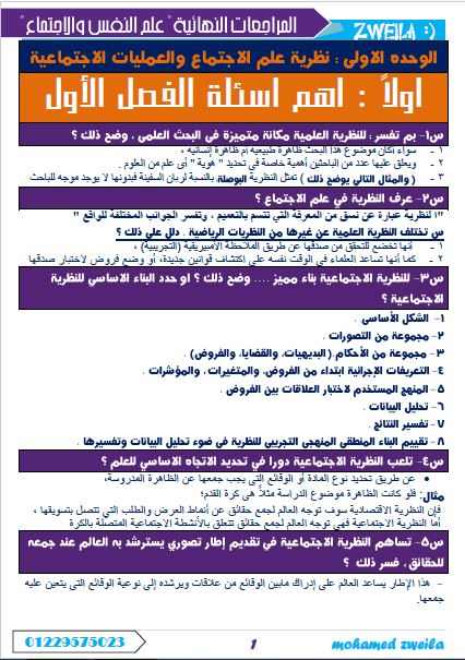 المراجعة الاولي في منهج علم الاجتماع 2017