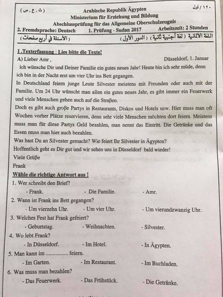 Neww1qw1 اجابه امتحان السودان في اللغه الالمانيه 2017