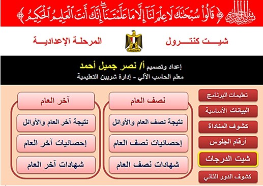شيت كنترول المرحلة الإعدادية أ/ نصر جميل أحمد